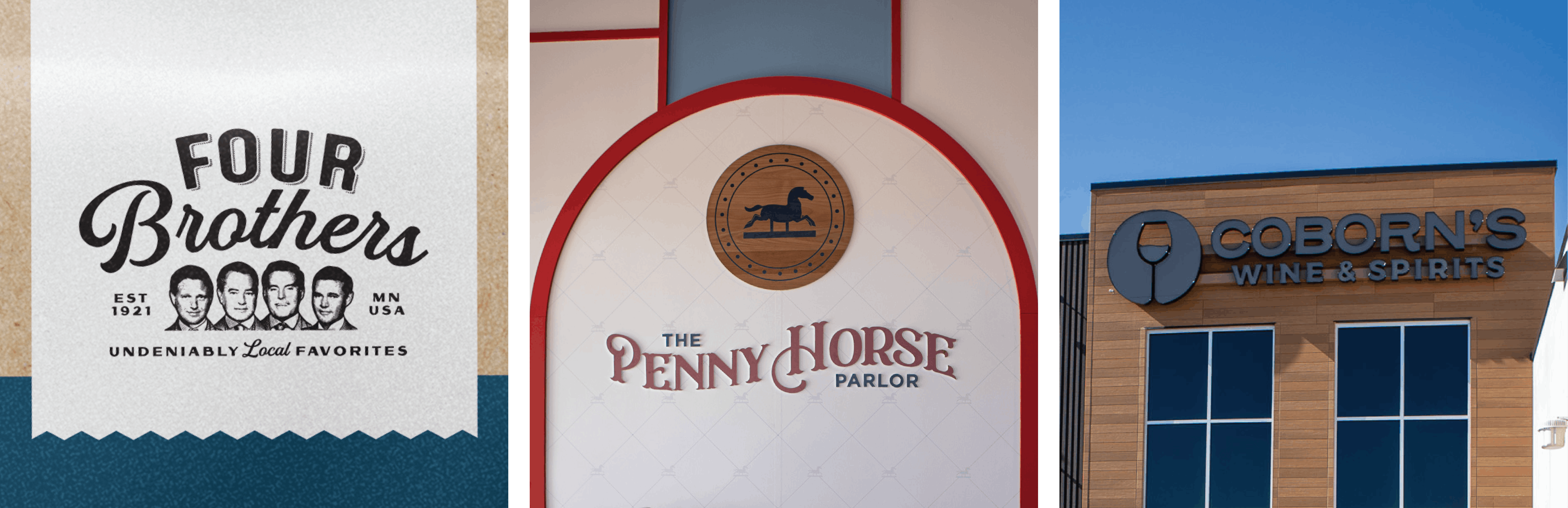 Coborn’s Market & Table is designed as a collection of distinct sub-brands that work together to create a layered, immersive in-store experience. Each concept carries its own identity and story, allowing guests to engage with the space as a series of curated moments. From the nostalgic Penny Horse Parlor Ice Cream & Sweets, to the elevated Four Brothers Premium Specialty products, to the modern Coborn’s Wine & Spirits, each brand plays a unique role in shaping the overall experience. Each of these sub-brands is explored further through its own dedicated case study, offering deeper insight into the strategy and design behind the full ecosystem.